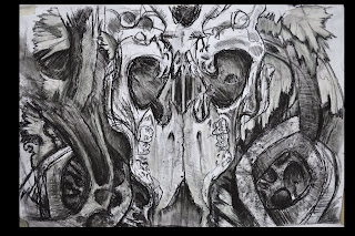 This is what he does when he's not in shows. Sketchbook sometimes doubles as a tea tray. Tea sometimes doubles as paint. More recent additions not shown include Daleks, Ninjas, and the tidy gentlemanly mustache my Mac grew.